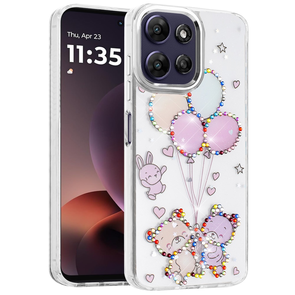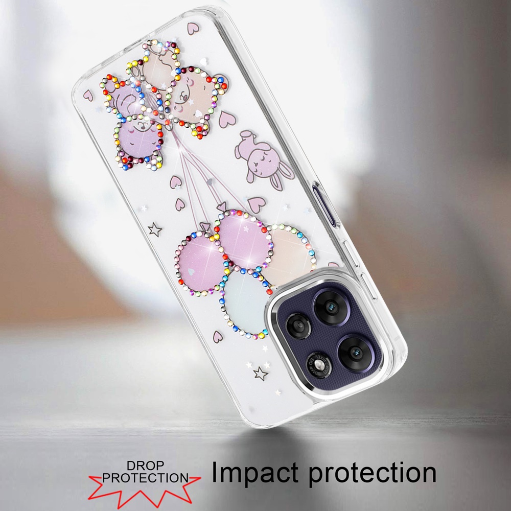 For Motorola Moto G Power 5G 2025 Resin Epoxy Design Diamond Metal Edged Hybrid Case - K
