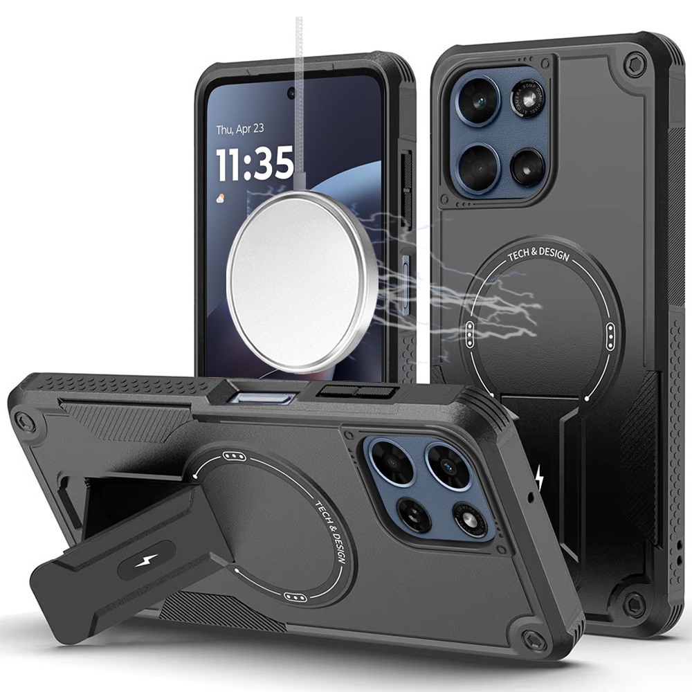 For Motorola Moto G 5G 2025 Sturdy Bracket Kickstand Magnetic Hybrid - Black