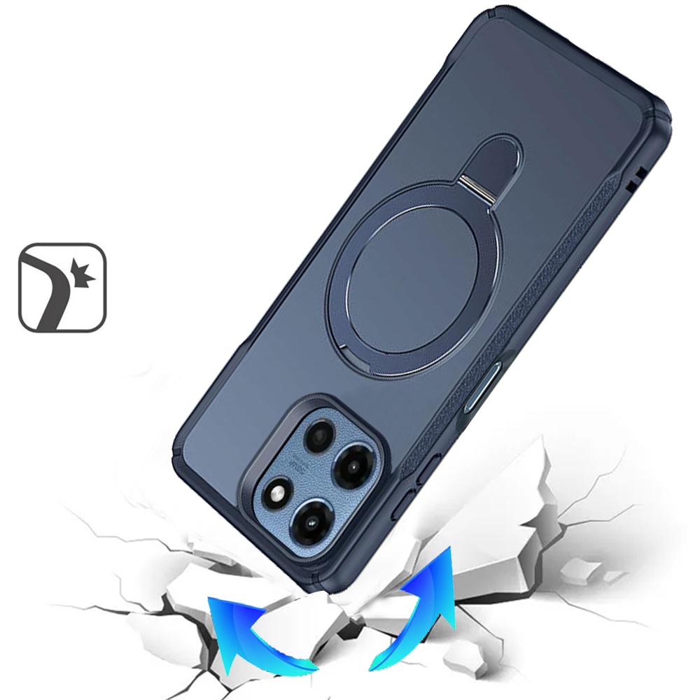 For Motorola Moto G 5G 2025 Matte Finish Simplified Magnetic Ring With Stand Hybrid Case - Navy Blue