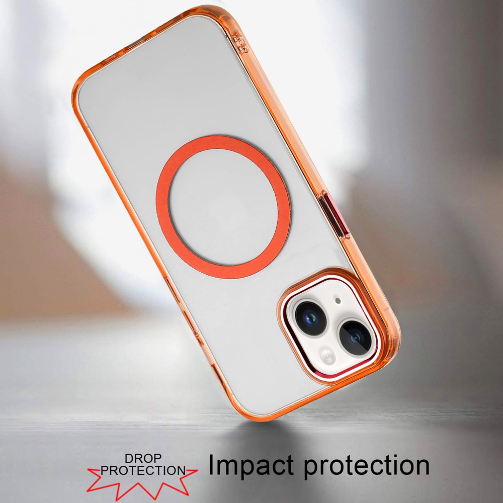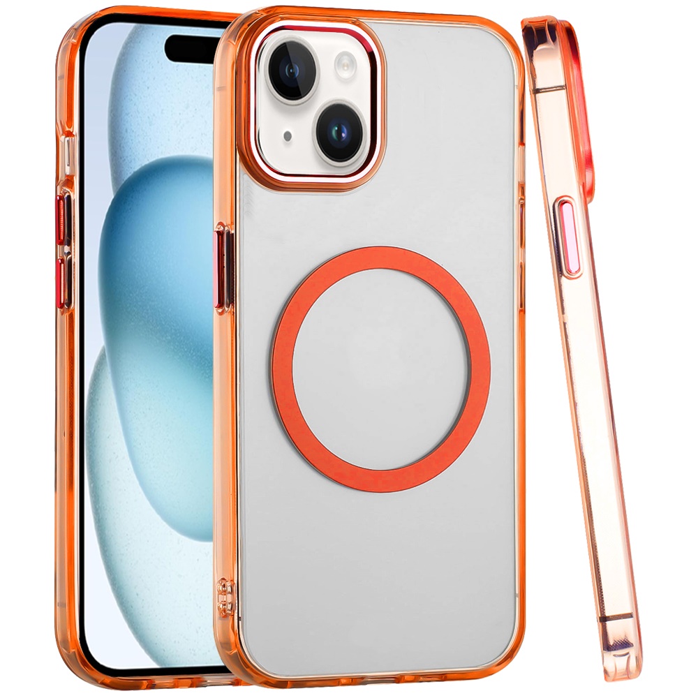 For iPhone 15 Plus/iPhone 14 Plus Magnetic Circle Ring Transparent Premium Acrylic with Metal Buttons & Camera Raised Lip - Cosmic Orange