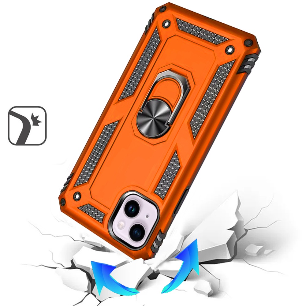 For iPhone 15 Plus/iPhone 14 Plus Ring Magnetic Kickstand Hybrid Case Cover - Cosmic Orange