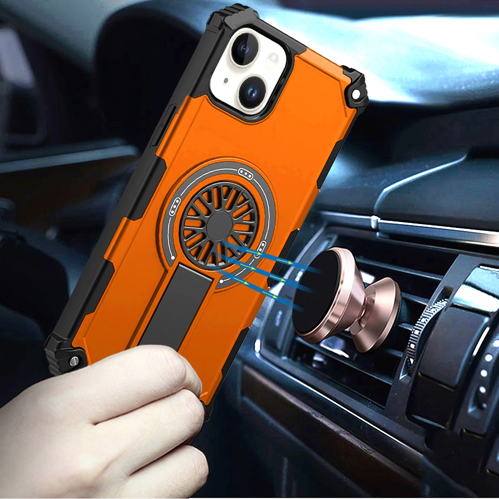 For iPhone 15 Plus/iPhone 14 Plus CD Texture Design Magnetic Car Mount Friendly HQ Hybrid - Cosmic Orange