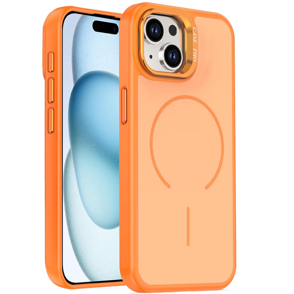 For iPhone 15 Premium Matte Magnetic Metal Camera Stand Hybrid Case - Cosmic Orange