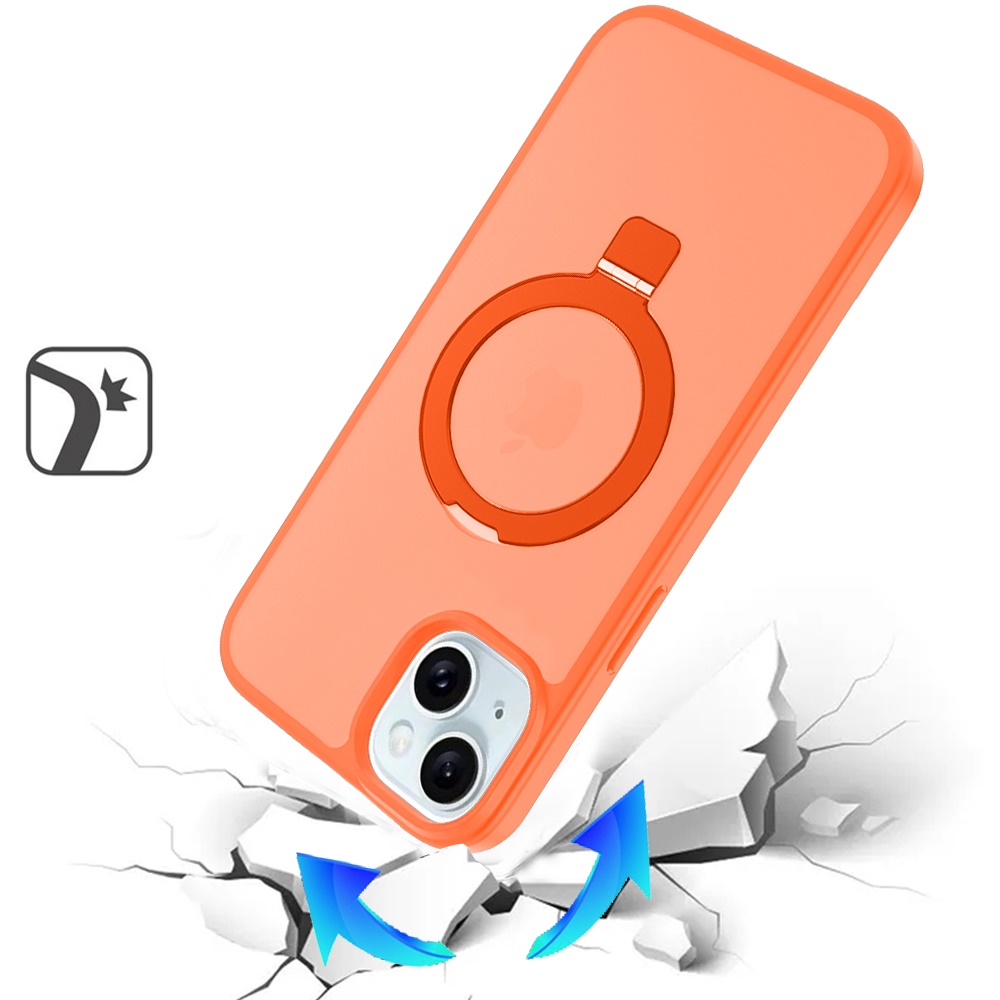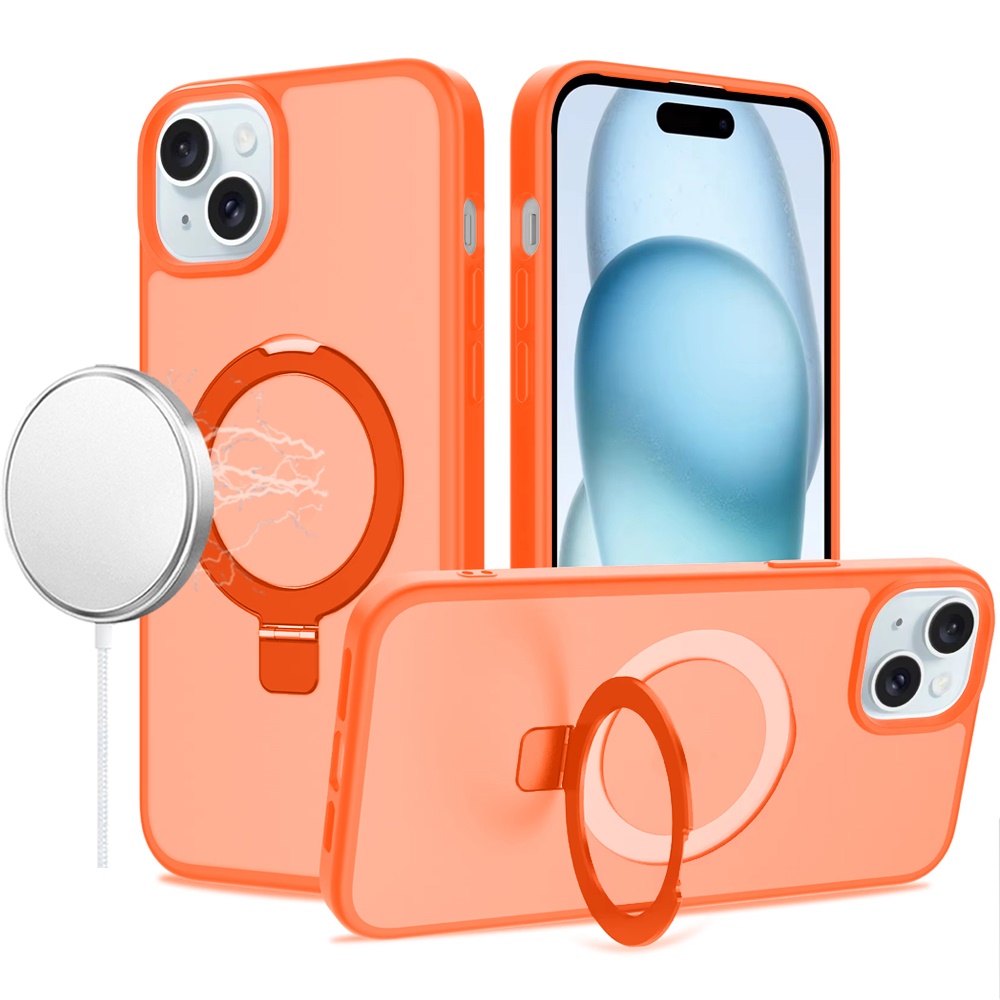 For iPhone 15 Magnetic Matching Ring Stand Full Rotation Matte Hybrid - Cosmic Orange