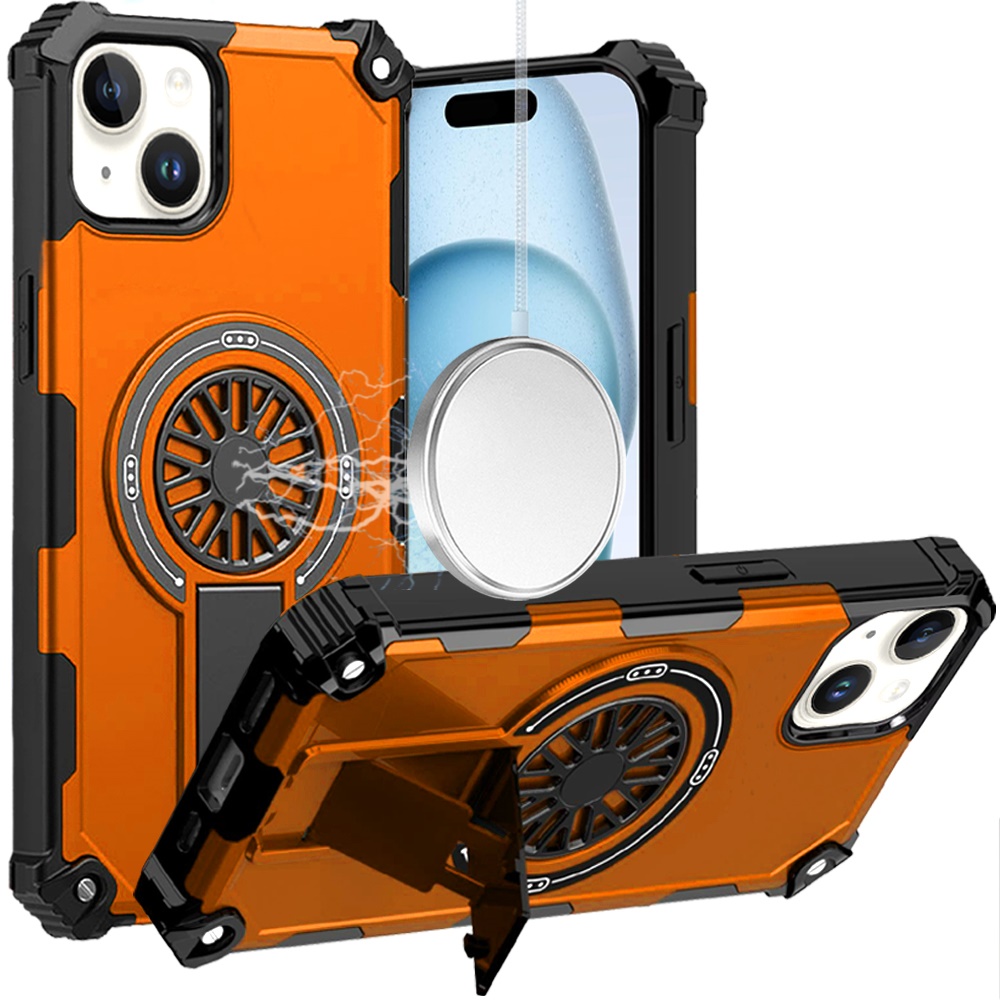 For iPhone 15 CD Texture Design Magnetic Car Mount Friendly HQ Hybrid - Cosmic Orange