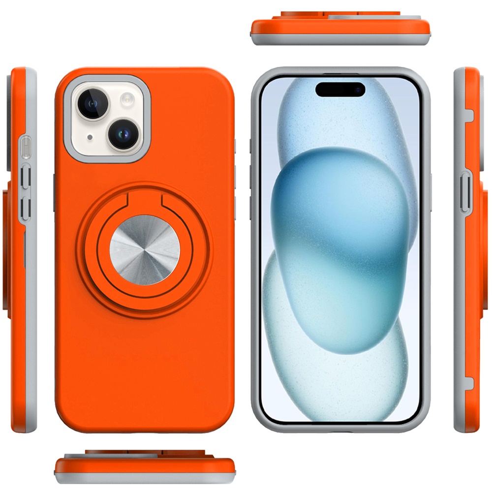 For iPhone 15 Metal CD Pattern Matte Finished Hybrid with Rotational Ring [Car Mount Friendly] Case - Cosmic Orange