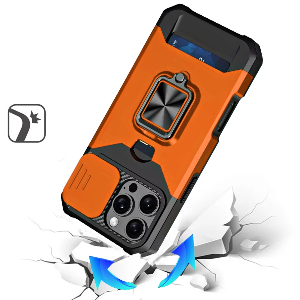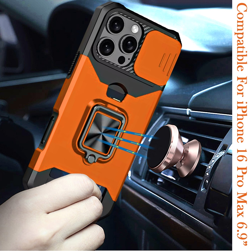 For iPhone 16 Pro Max 6.9 inch Multi-Functional Card Magnetic Ring Stand Hybrid Camera Case Cover - Cosmic Orange