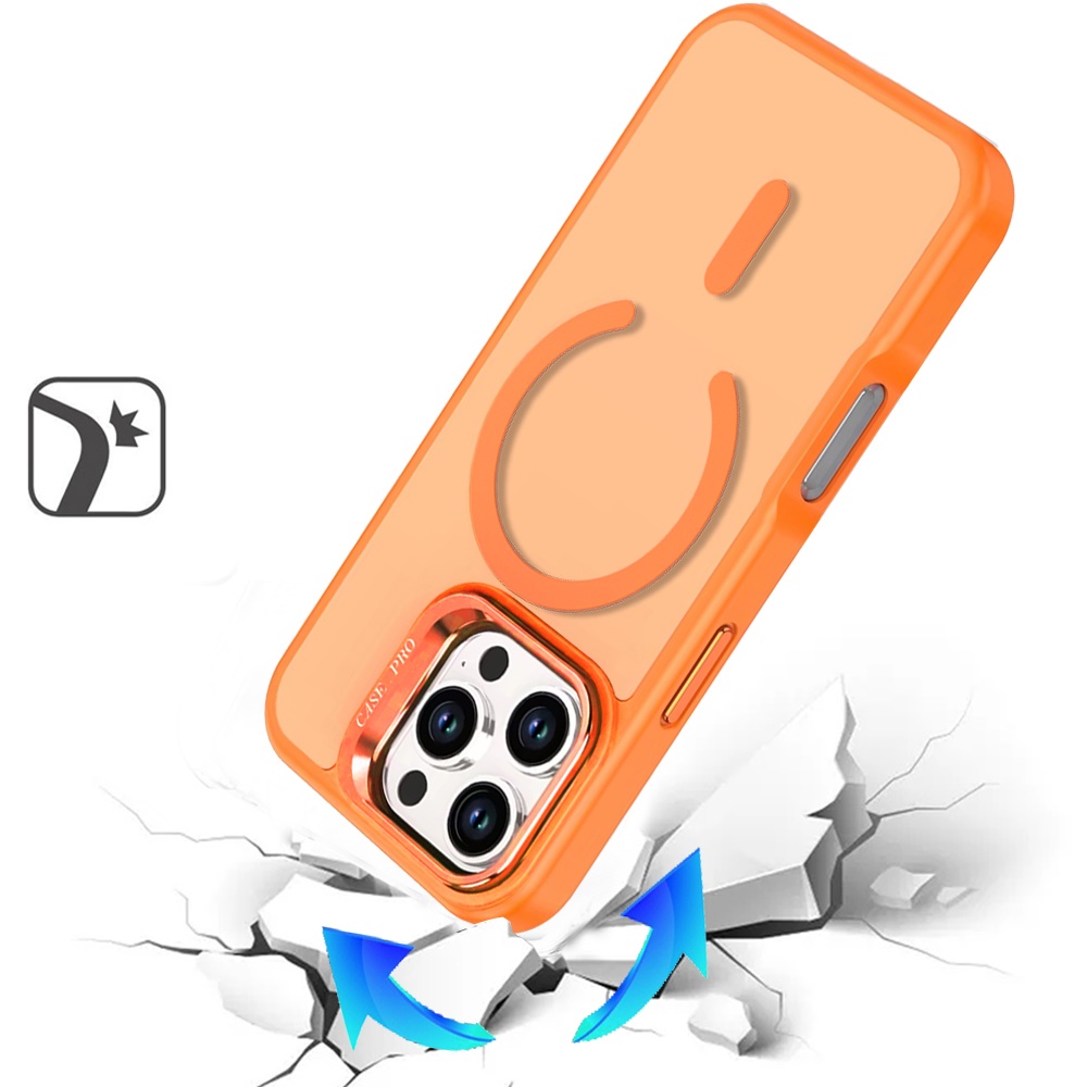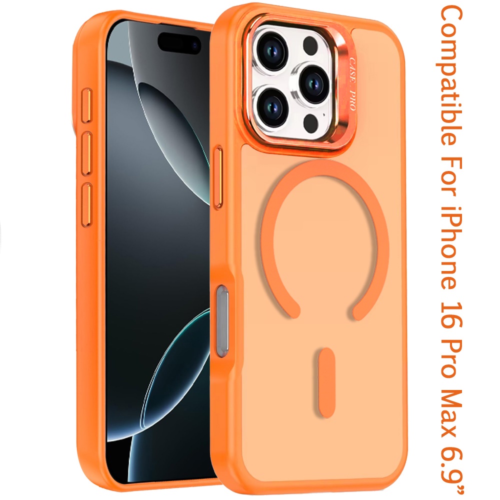 For iPhone 16 Pro Max 6.9 inch Magnetic Matte Camera Metallic Stand Hybrid Case - Cosmic Orange