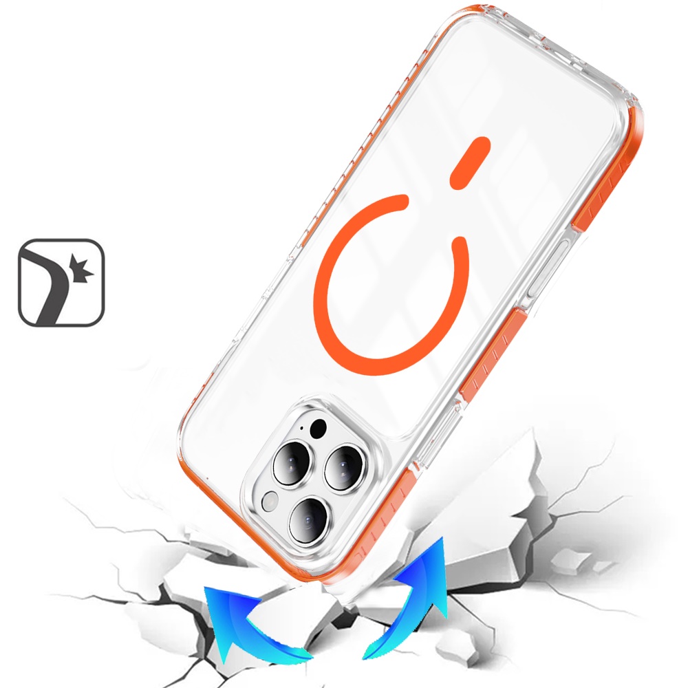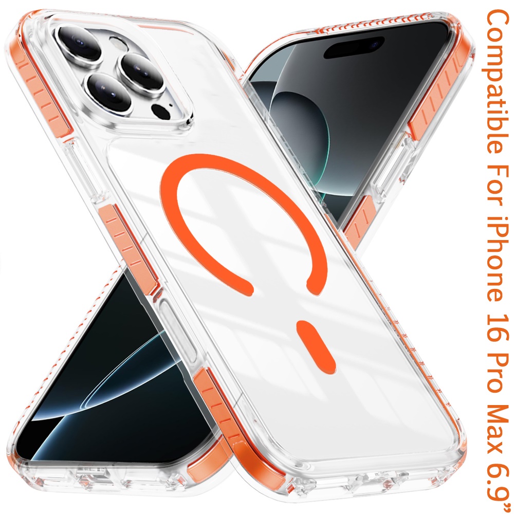 For iPhone 16 Pro Max 6.9 inch Thick Transparent Colored Edged Magnetic Hybrid Case - Cosmic Orange