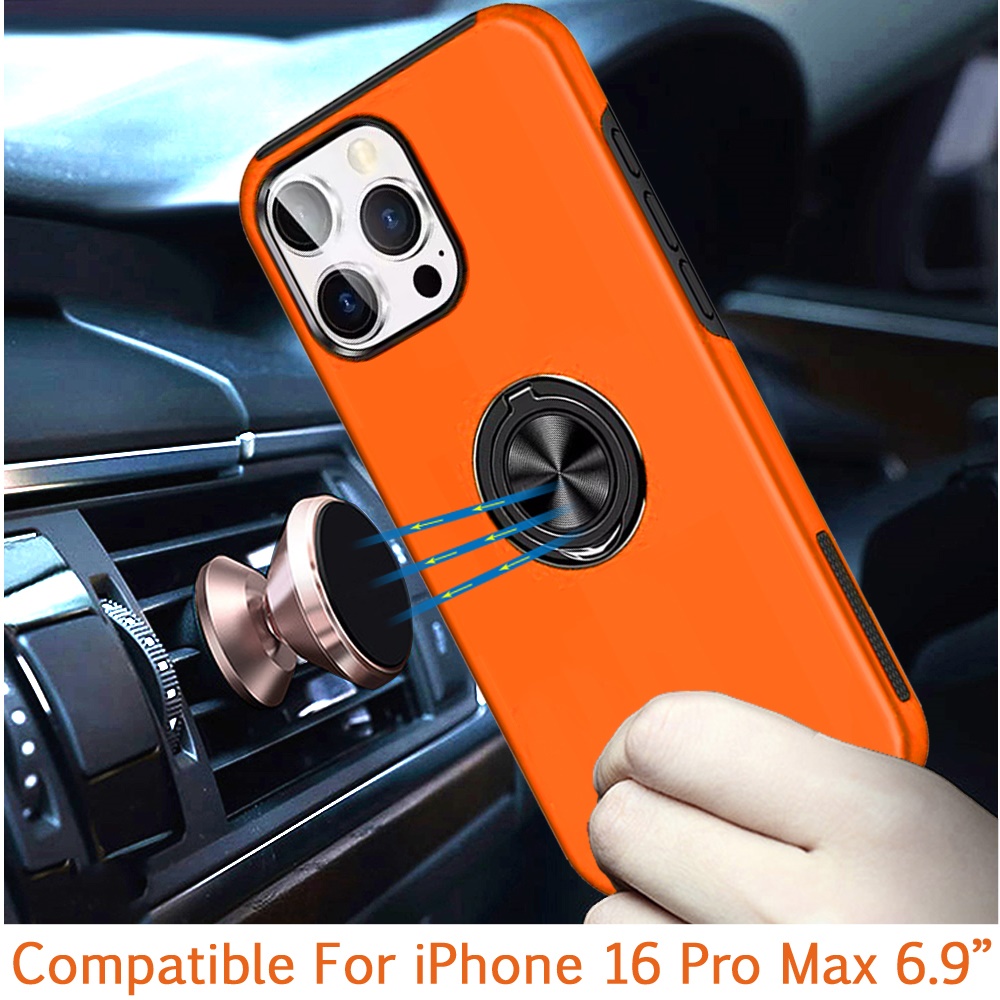 For iPhone 16 Pro Max 6.9 inch CHIEF Oil Painted Magnetic Ring Stand Hybrid Case Cover - Cosmic Orange
