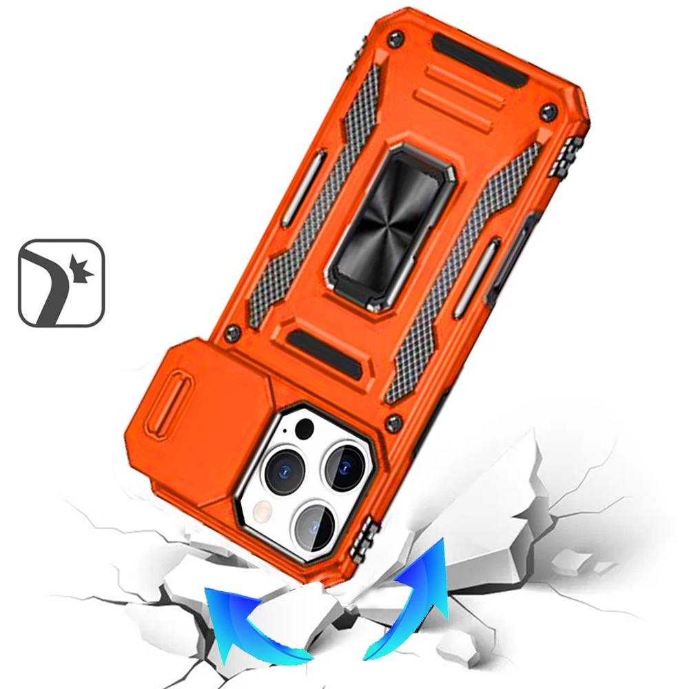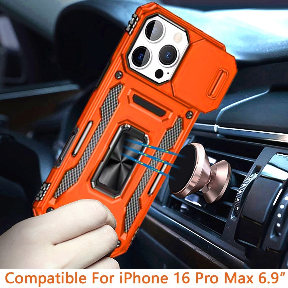 For iPhone 16 Pro Max 6.9 inch Utter Tough Metal Ring Movable Camera Window Hybrid Case Cover - Cosmic Orange