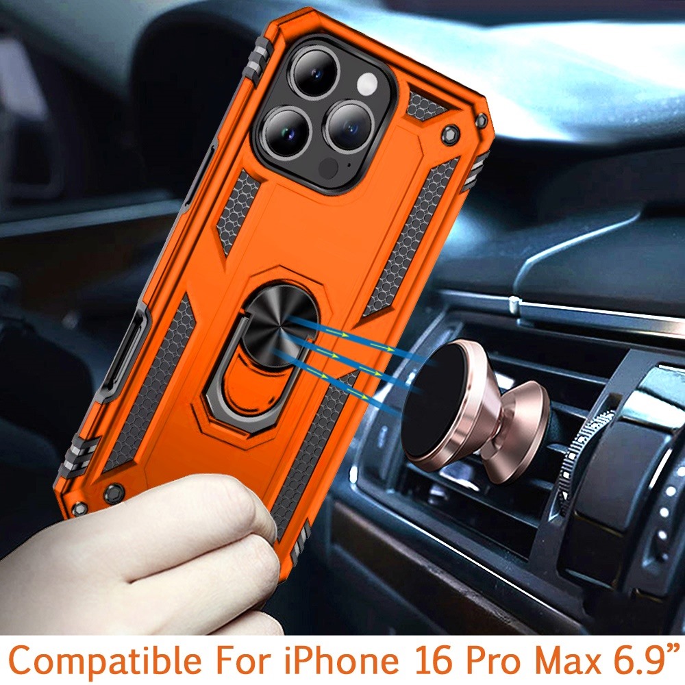 For iPhone 16 Pro Max 6.9 inch Ring Magnetic Kickstand Hybrid Case Cover - Cosmic Orange