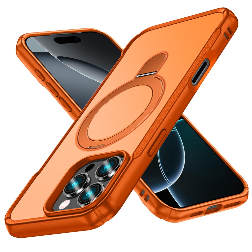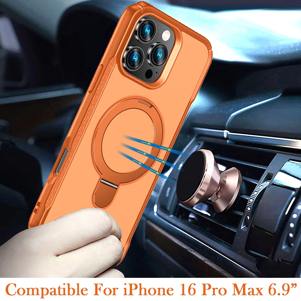 For iPhone 16 Pro Max 6.9 inch Matte Finish Simplified Magnetic Ring With Stand Hybrid Case - Cosmic Orange