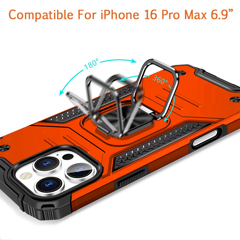 For iPhone 16 Pro Max 6.9 inch Robust Magnetic Kickstand Hybrid Case Cover - Cosmic Orange