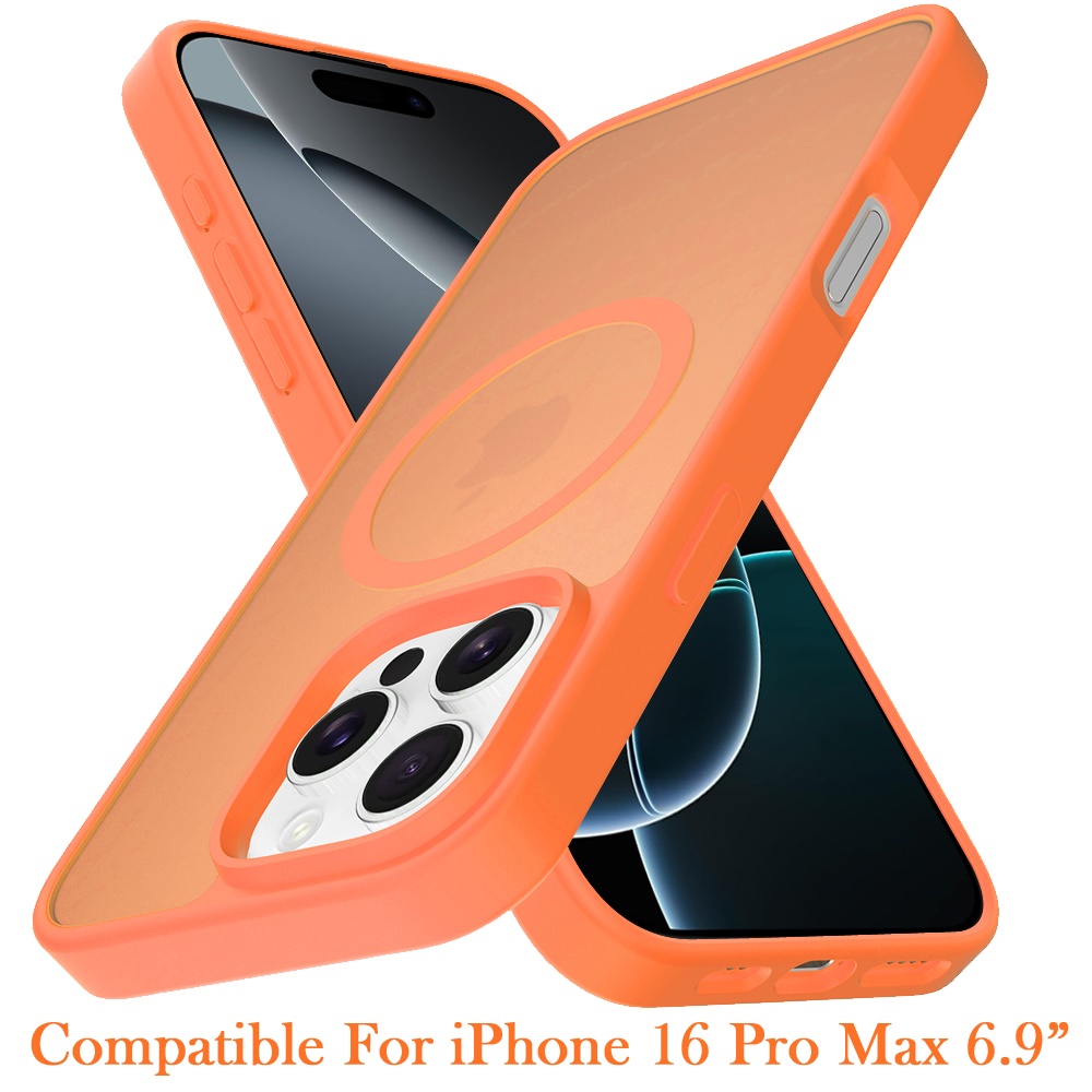 For iPhone 16 Pro Max 6.9 inch [Magnetic Circle] Smooth Safe Matte Feel Hybrid Case - Cosmic Orange