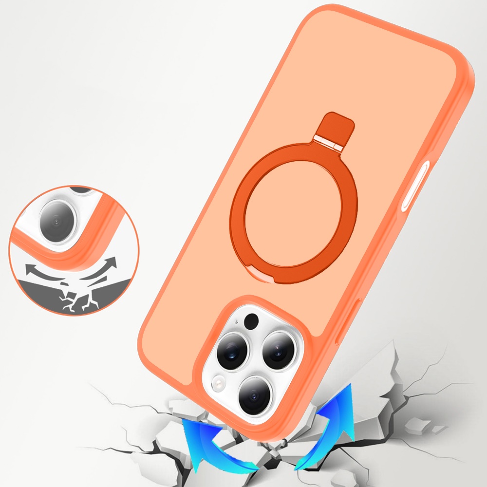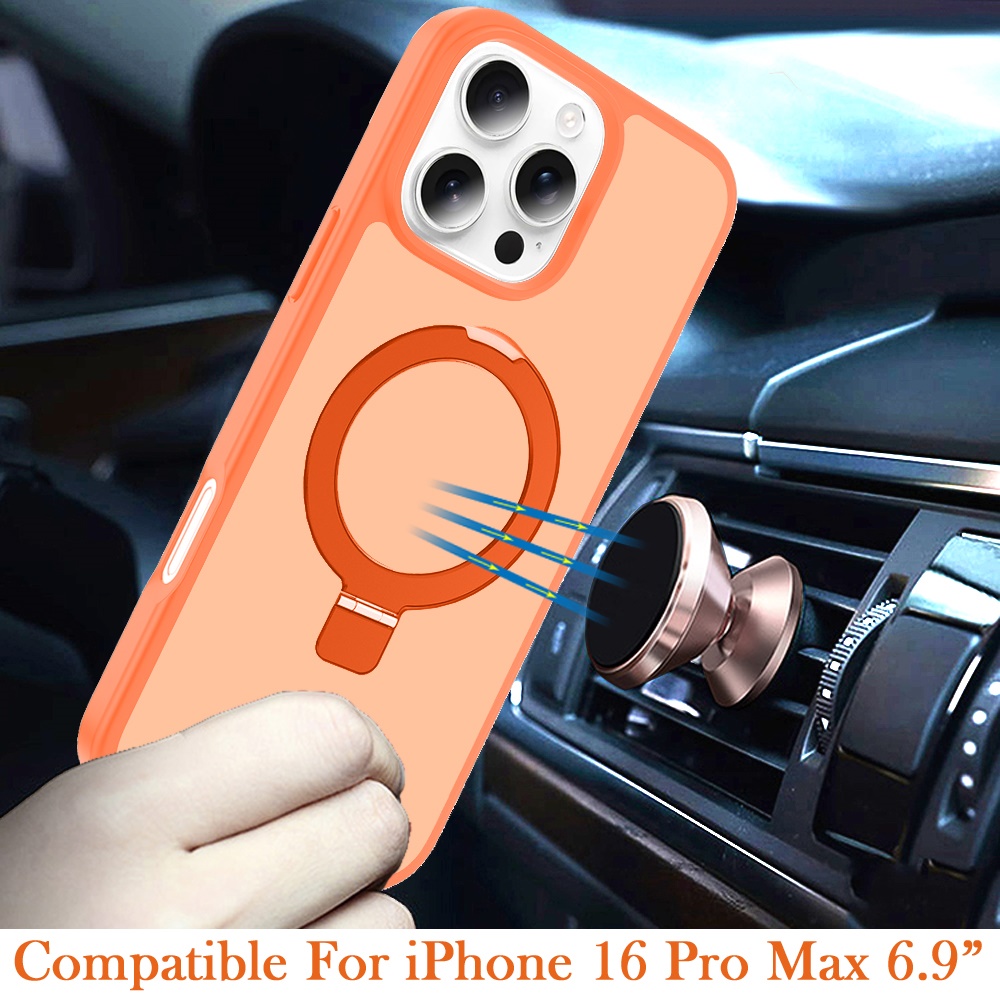 For iPhone 16 Pro Max 6.9 inch Magnetic Matching Ring Stand Full Rotation Matte Hybrid - Cosmic Orange