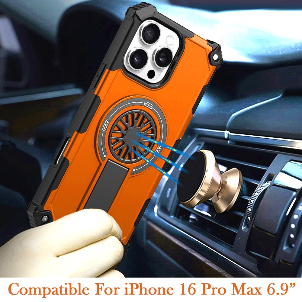 For iPhone 16 Pro Max 6.9 inch CD Texture Design Magnetic Car Mount Friendly HQ Hybrid - Cosmic Orange