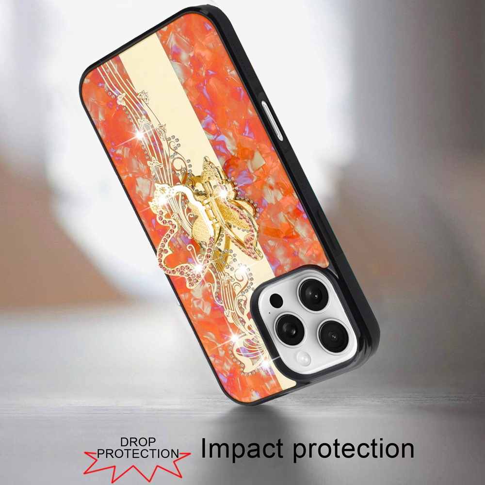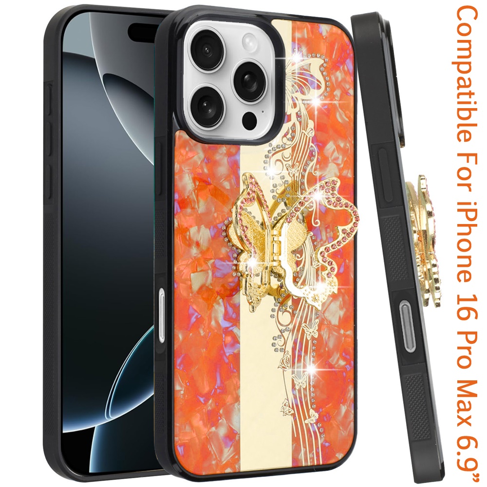 For iPhone 16 Pro Max 6.9 inch SPLENDID Diamond Glitter Ornaments Engraving Case Cover - Enchanted Butterfly Cosmic Orange