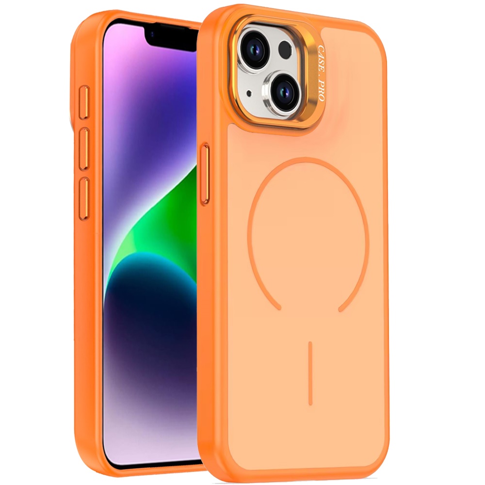 For iPhone 13/14 Premium Matte Magnetic Metal Camera Stand Hybrid Case - Cosmic Orange