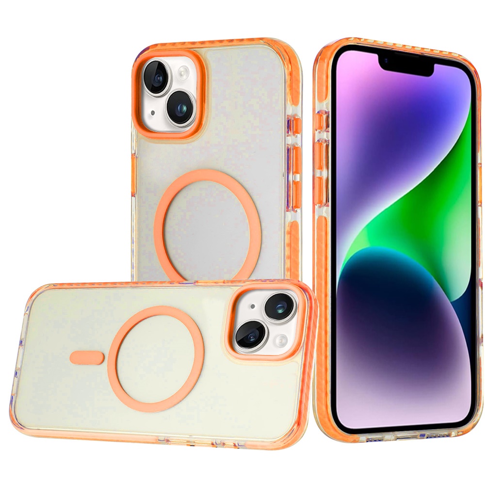 For iPhone 13/14 Transparent Matching Color Magnetic Ring Hybrid - Cosmic Orange