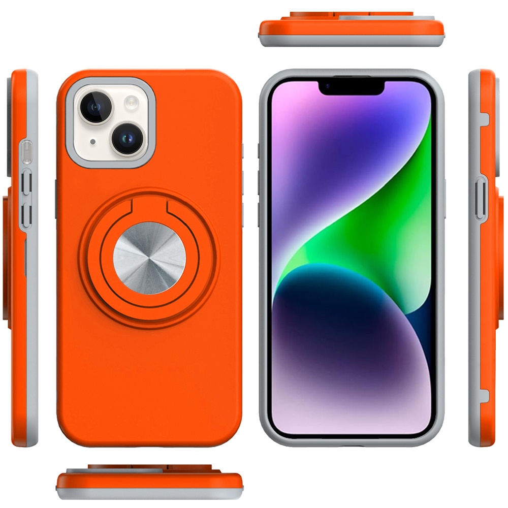 For iPhone 13/14 Metal CD Pattern Matte Finished Hybrid with Rotational Ring [Car Mount Friendly] Case - Cosmic Orange