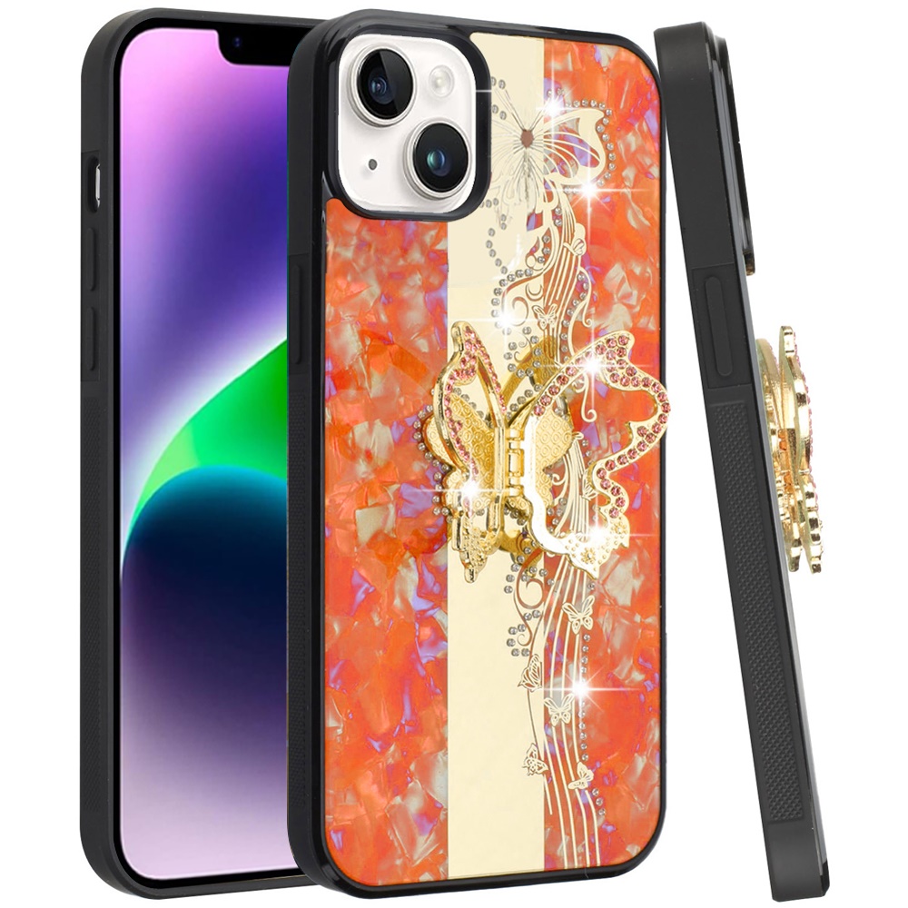 For iPhone 13/14 SPLENDID Diamond Glitter Ornaments Engraving Case Cover - Enchanted Butterfly Cosmic Orange