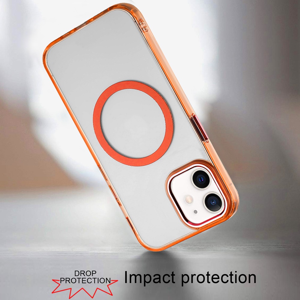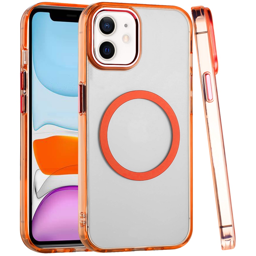 For iPhone 11 (XI6.1) Magnetic Circle Ring Transparent Premium Acrylic with Metal Buttons & Camera Raised Lip - Cosmic Orange
