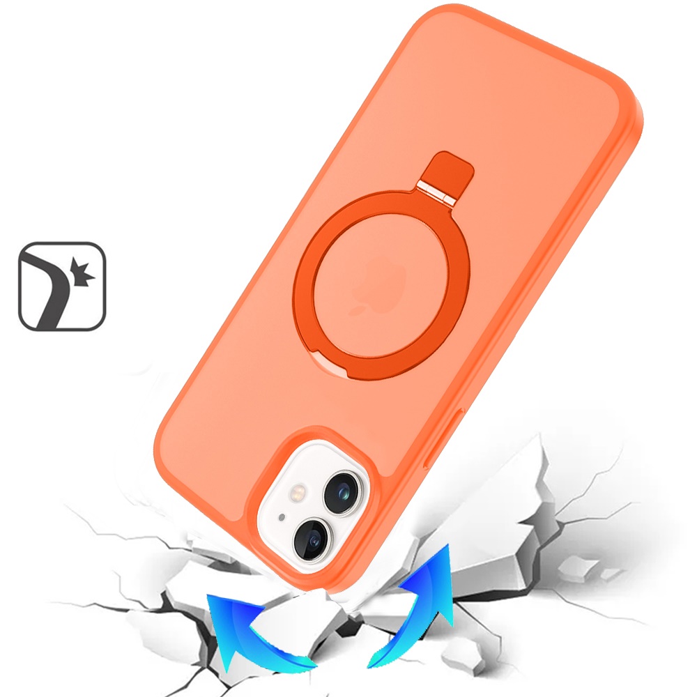 For iPhone 11 (XI6.1) Magnetic Matching Ring Stand Full Rotation Matte Hybrid - Cosmic Orange