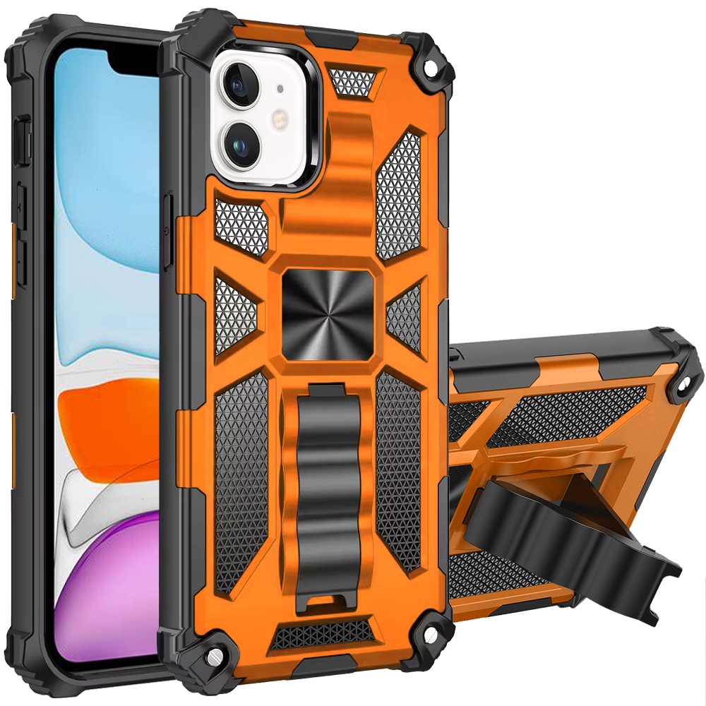 For iPhone 11 (XI6.1) Machine Design Hybrid with Kickstand - Cosmic Orange