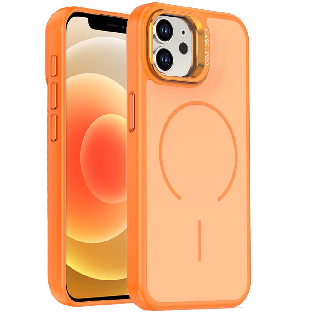 For iPhone 12 & iPhone 12 Pro Premium Matte Magnetic Metal Camera Stand Hybrid Case - Cosmic Orange