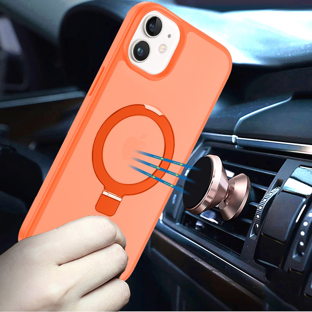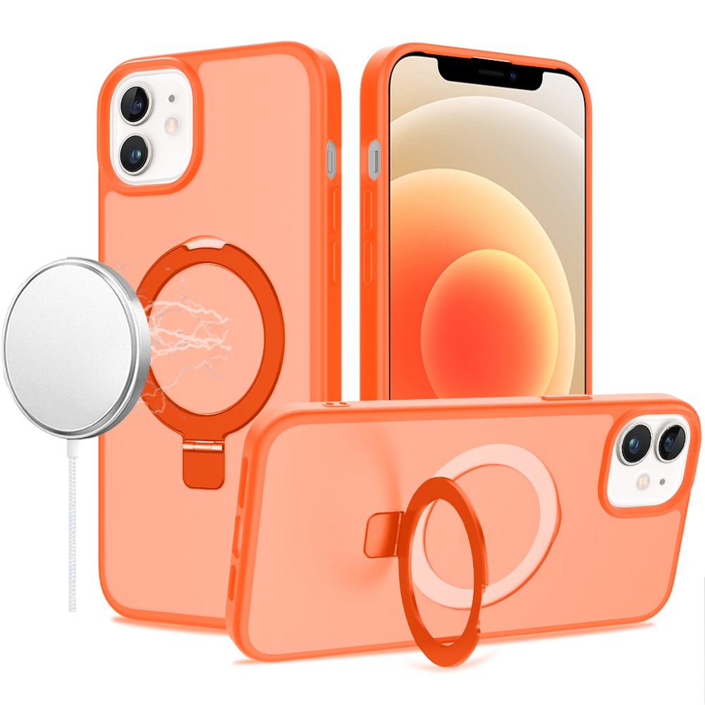 For iPhone 12 & iPhone 12 Pro Magnetic Matching Ring Stand Full Rotation Matte Hybrid - Cosmic Orange