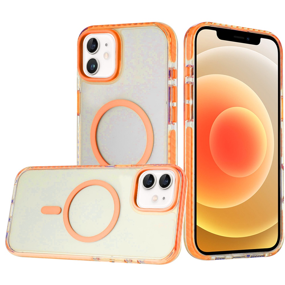 For iPhone 12 & iPhone 12 Pro Transparent Matching Color Magnetic Ring Hybrid - Cosmic Orange