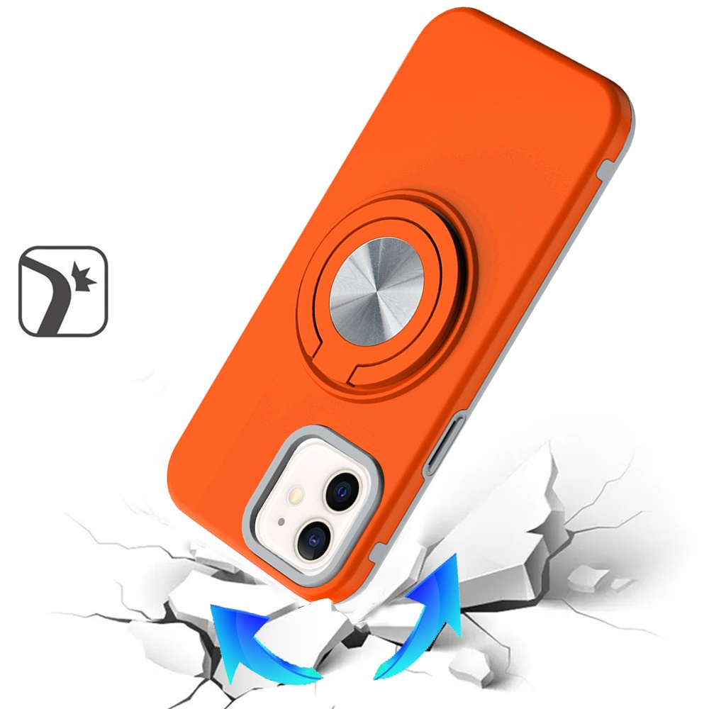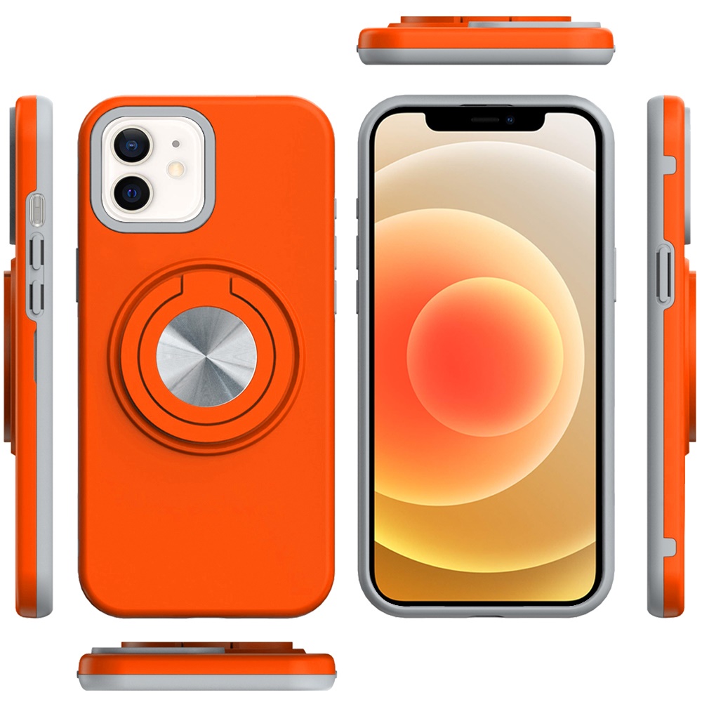 For iPhone 12 & iPhone 12 Pro Metal CD Pattern Matte Finished Hybrid with Rotational Ring [Car Mount Friendly] Case - Cosmic Orange