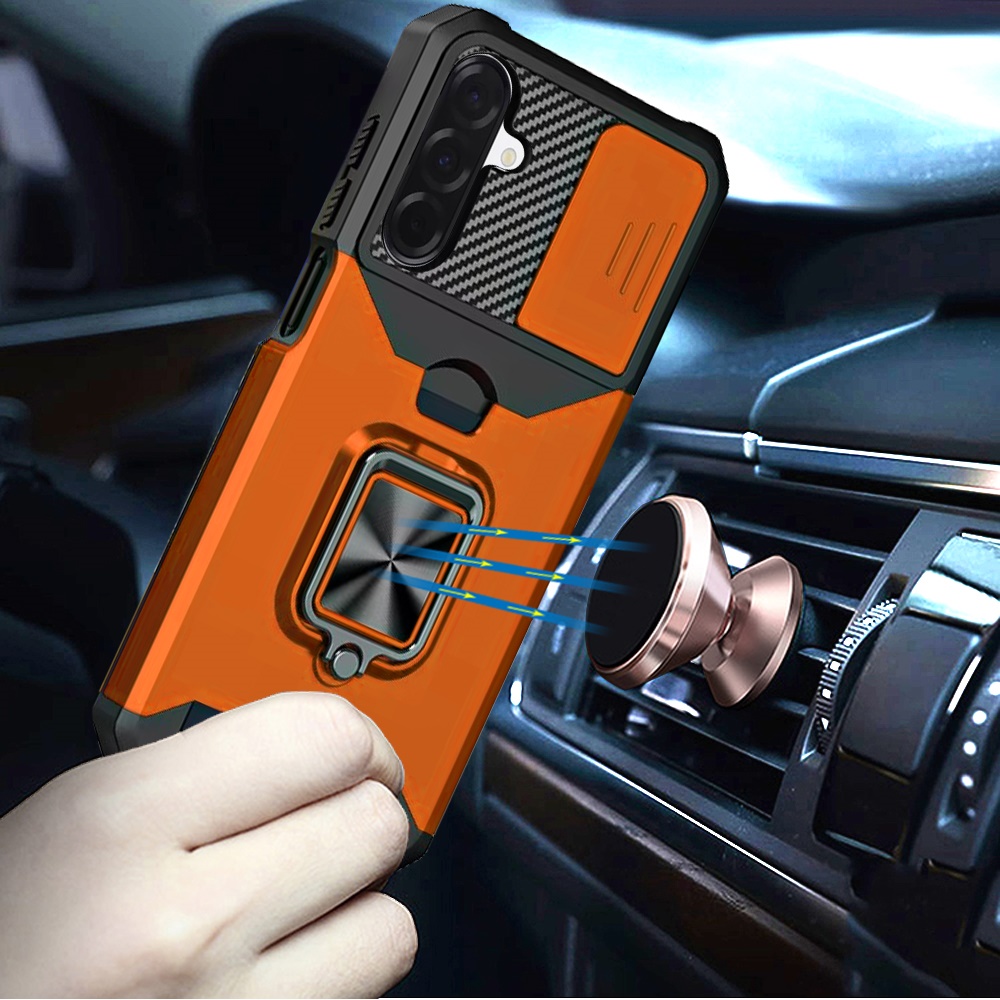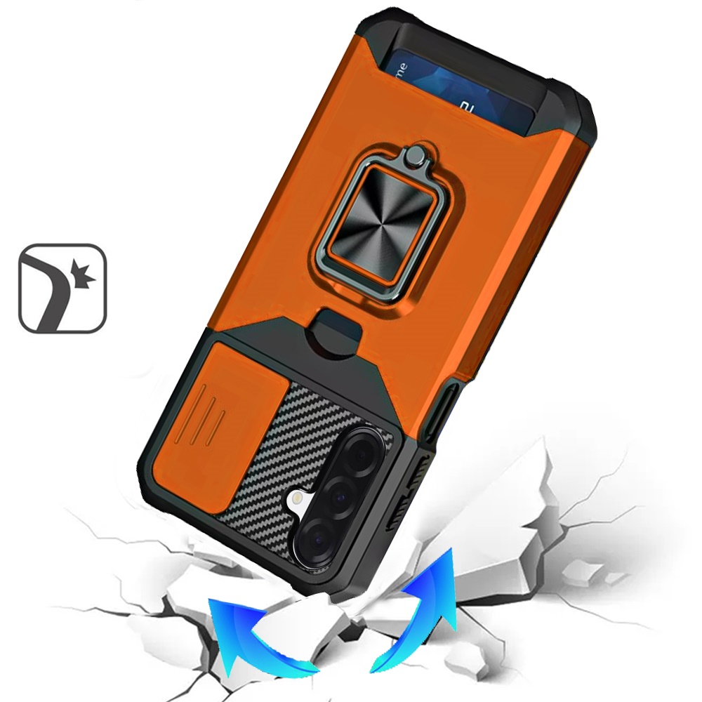 For Samsung A17 5G Multi-Functional Card Magnetic Ring Stand Hybrid Camera Case Cover - Cosmic Orange