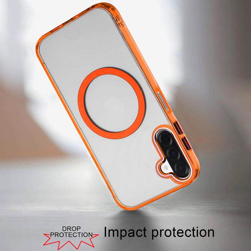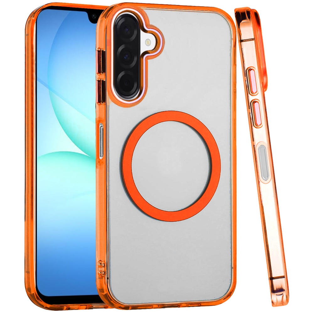 For Samsung A17 5G Magnetic Circle Ring Transparent Premium Acrylic with Metal Buttons & Camera Raised Lip - Cosmic Orange