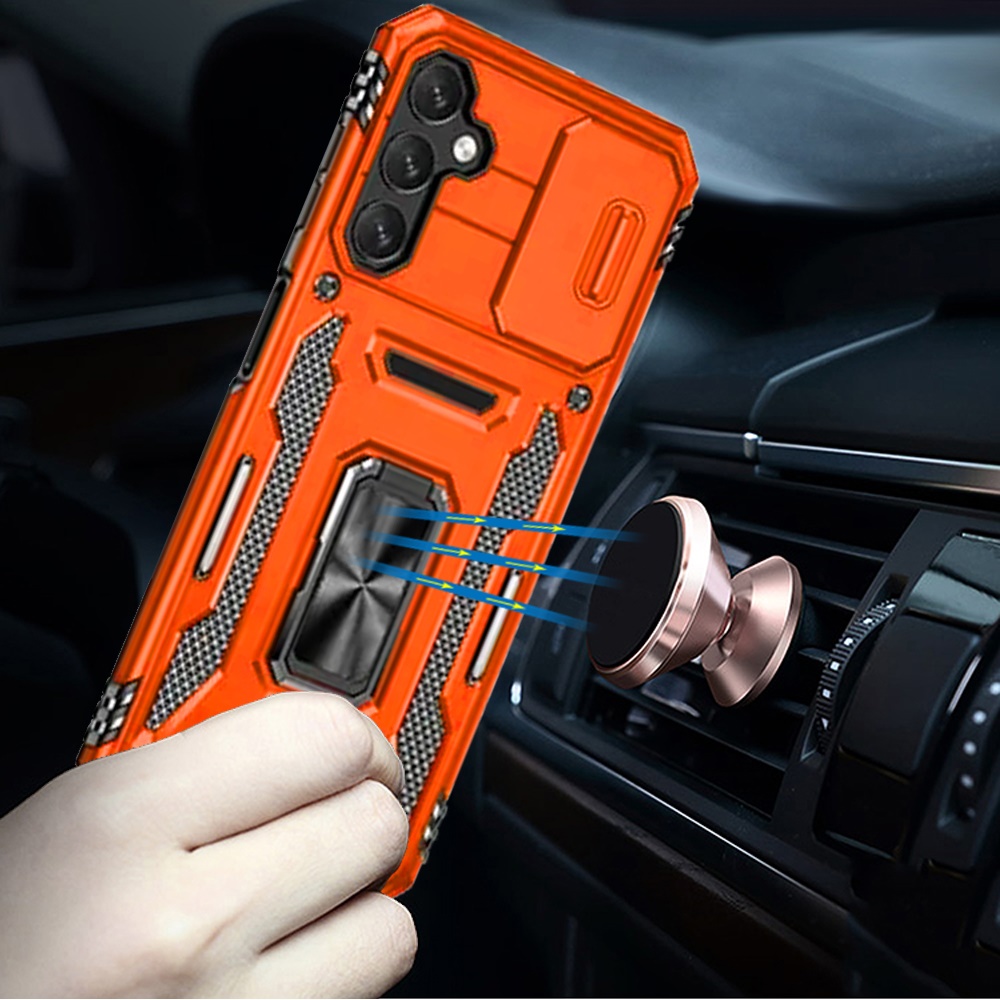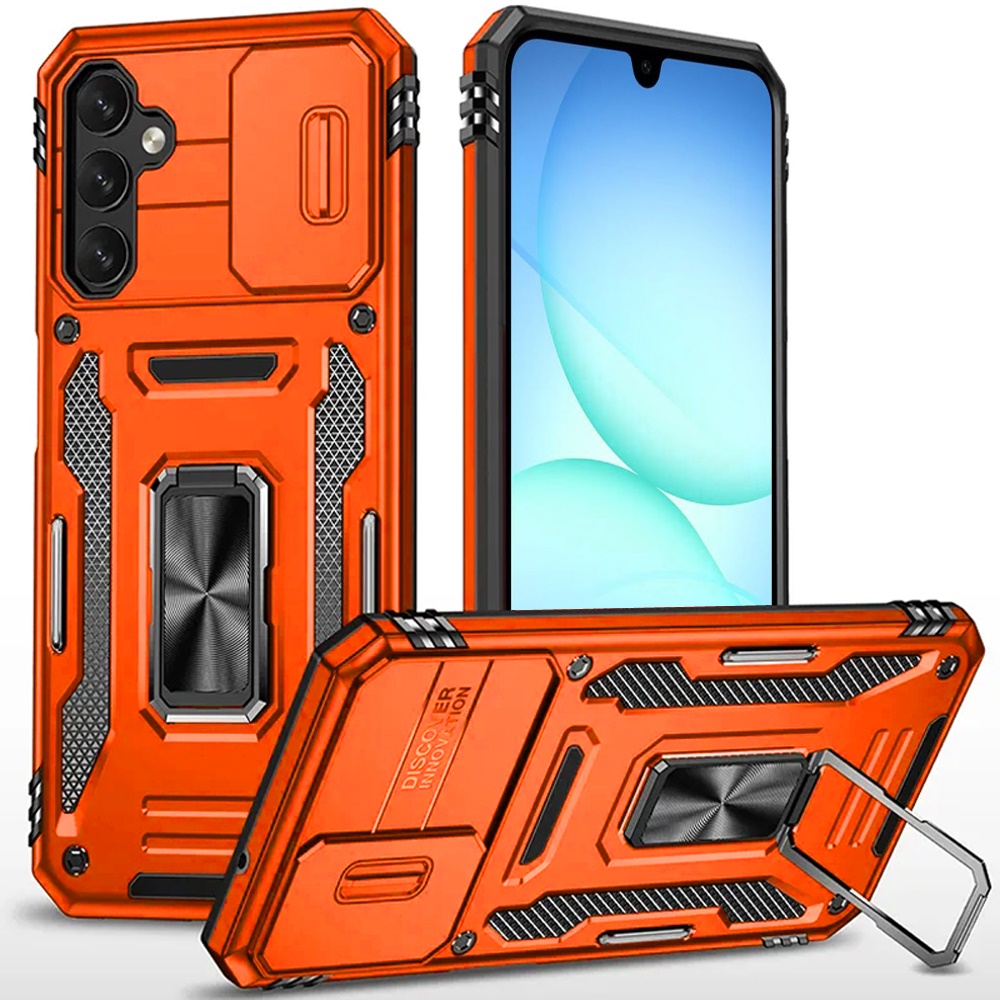 For Samsung A17 5G Utter Tough Metal Ring Movable Camera Window Hybrid Case Cover - Cosmic Orange