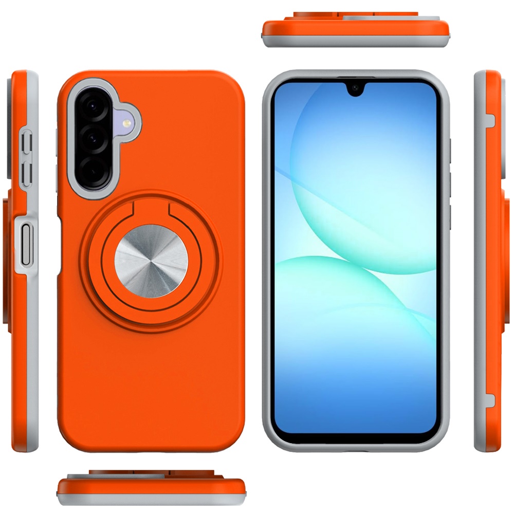 For Samsung A17 5G Metal CD Pattern Matte Finished Hybrid with Rotational Ring [Car Mount Friendly] Case - Cosmic Orange