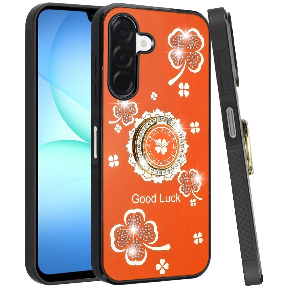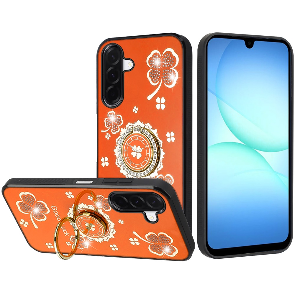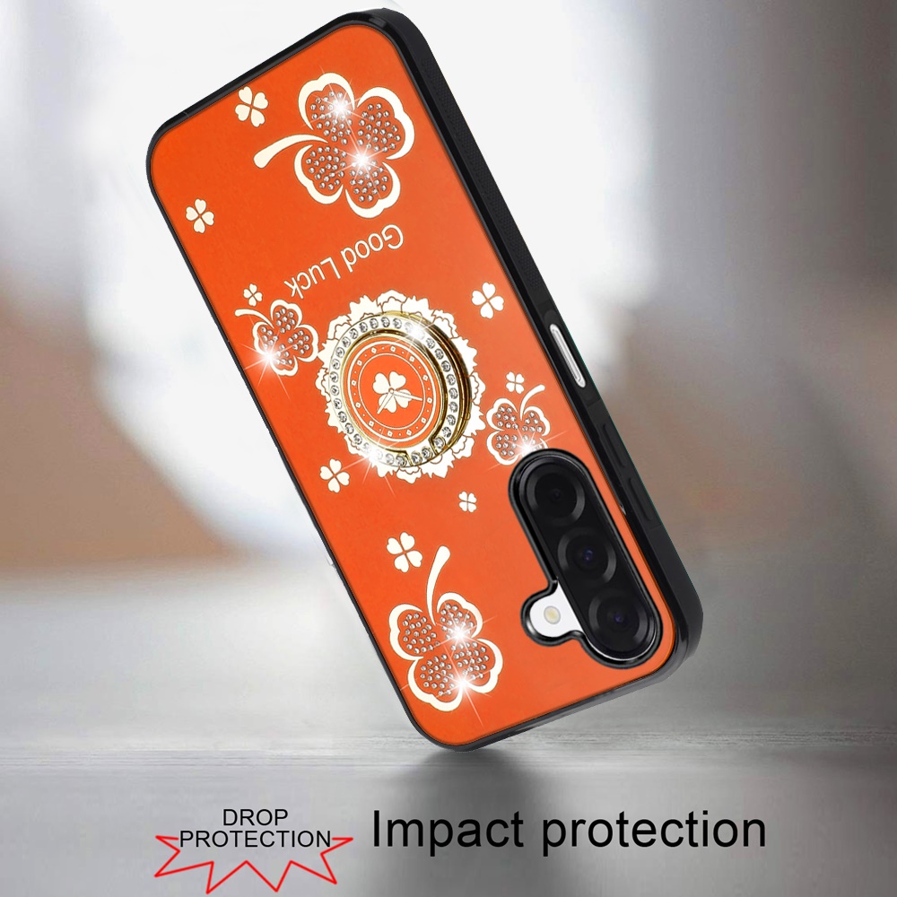 For Samsung A17 5G SPLENDID Diamond Glitter Ornaments Engraving Case Cover - Good Luck Floral Cosmic Orange