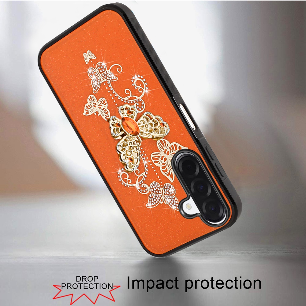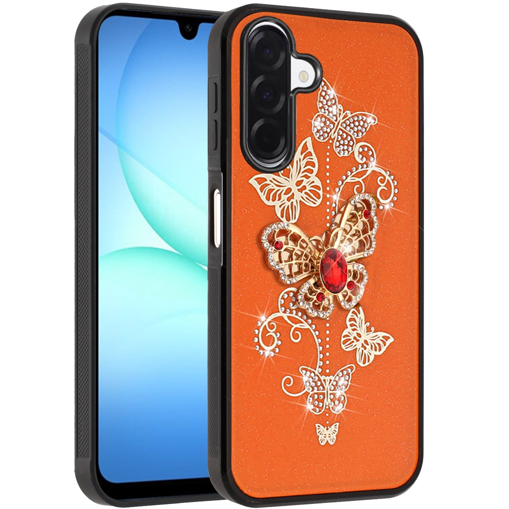 For Samsung A17 5G SPLENDID Diamond Glitter Ornaments Engraving Case Cover - Garden Butterflies Cosmic Orange