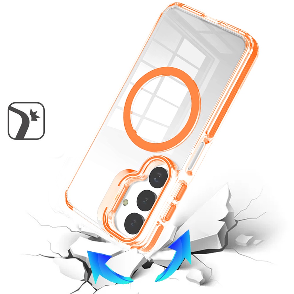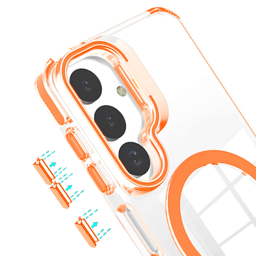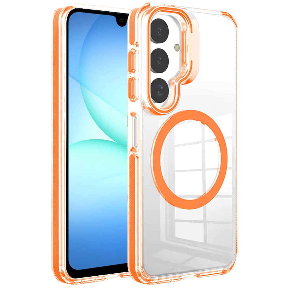 For Samsung A17 5G Camera Metallic Stand [Magnetic Circle] Transparent Colorful Matching Edged Tough Hybrid Case - Cosmic Orange