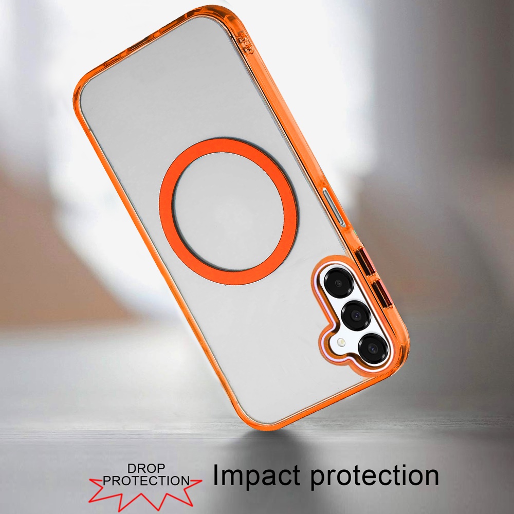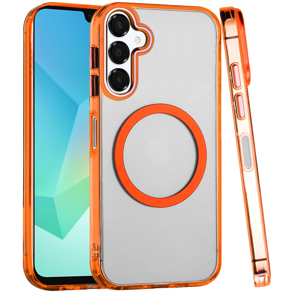 For Samsung A16 5G Magnetic Circle Ring Transparent Premium Acrylic with Metal Buttons & Camera Raised Lip - Cosmic Orange