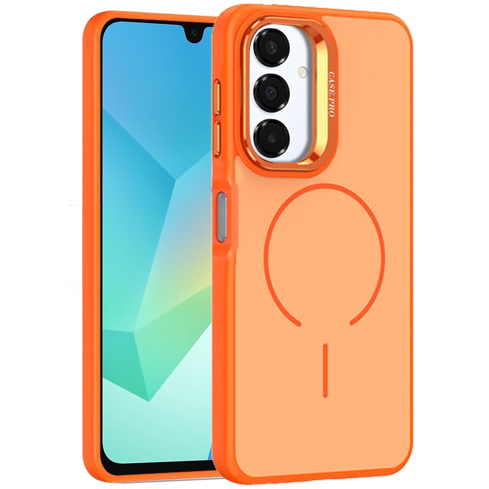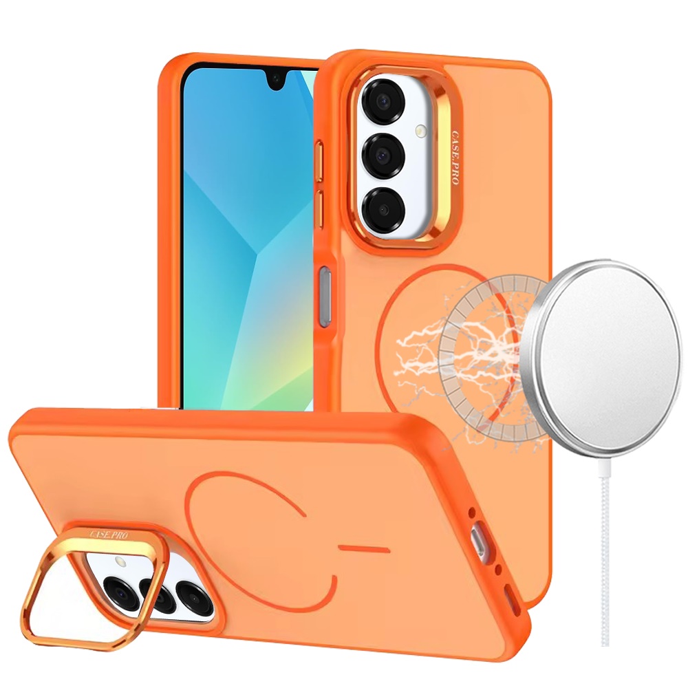 For Samsung A16 5G Premium Matte Magnetic Metal Camera Stand Hybrid Case - Cosmic Orange