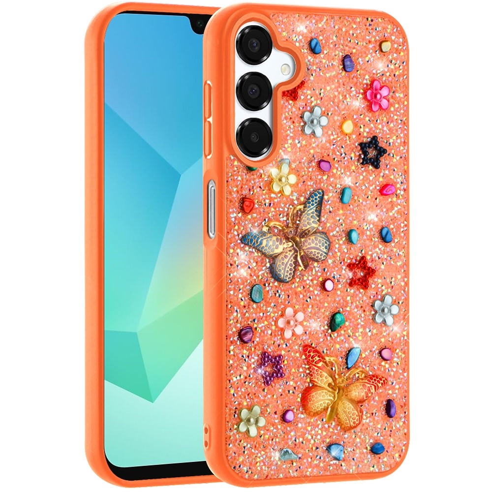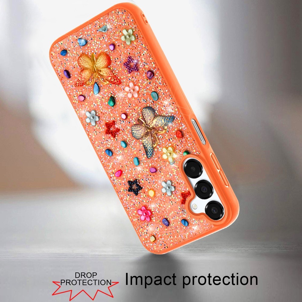 For Samsung A16 5G Butterfly Ornaments Diamond Bling Glitter Hybrid Case - Cosmic Orange