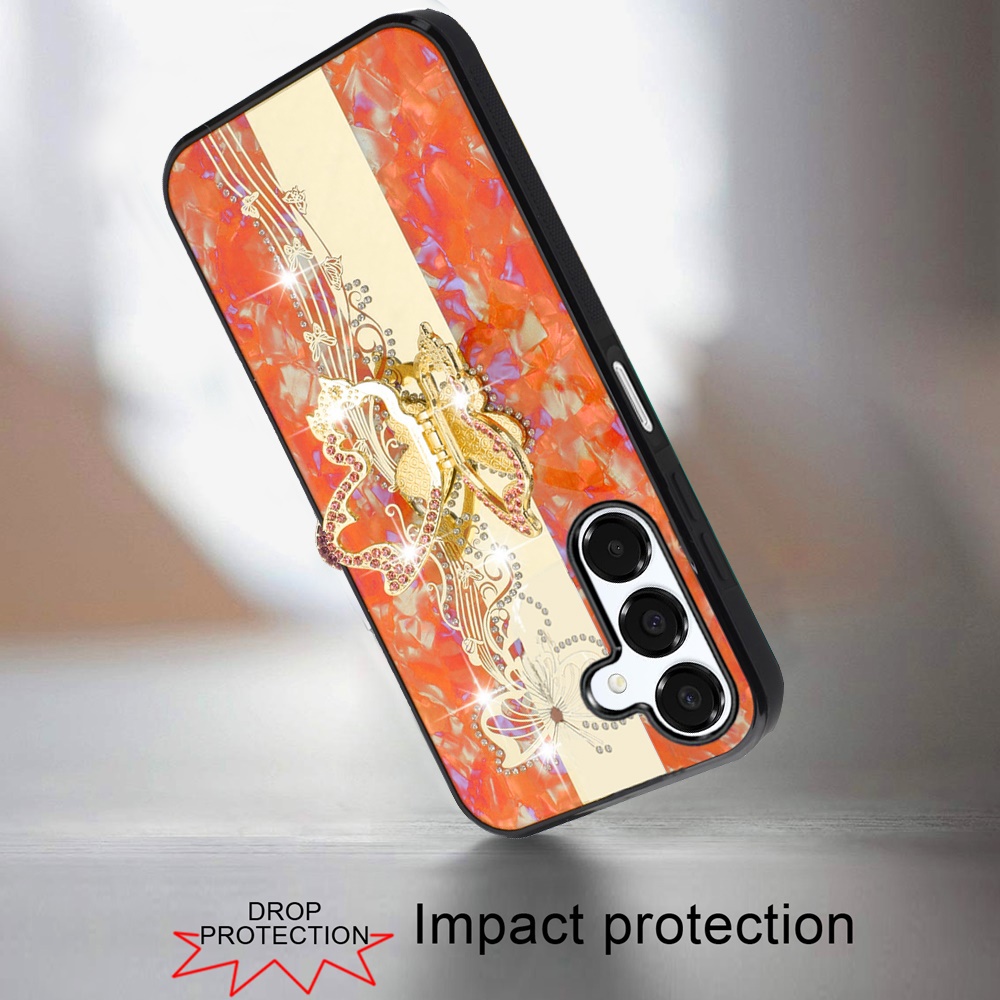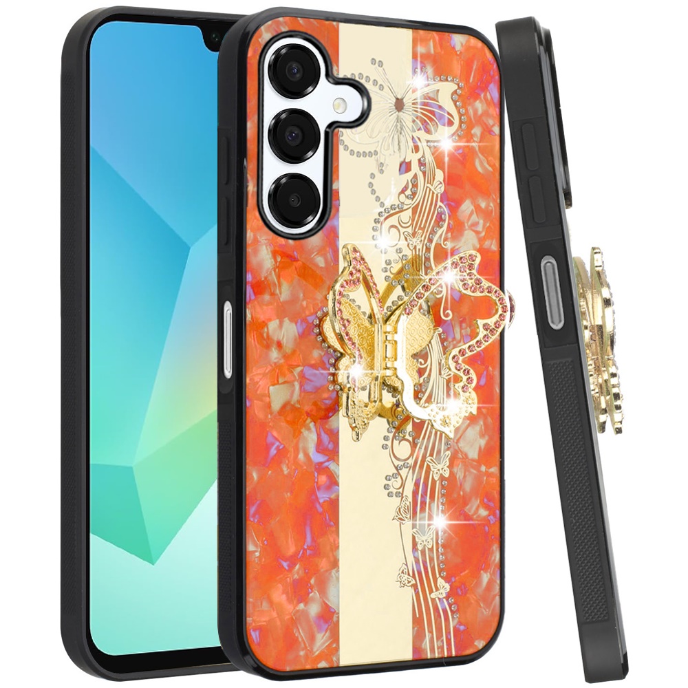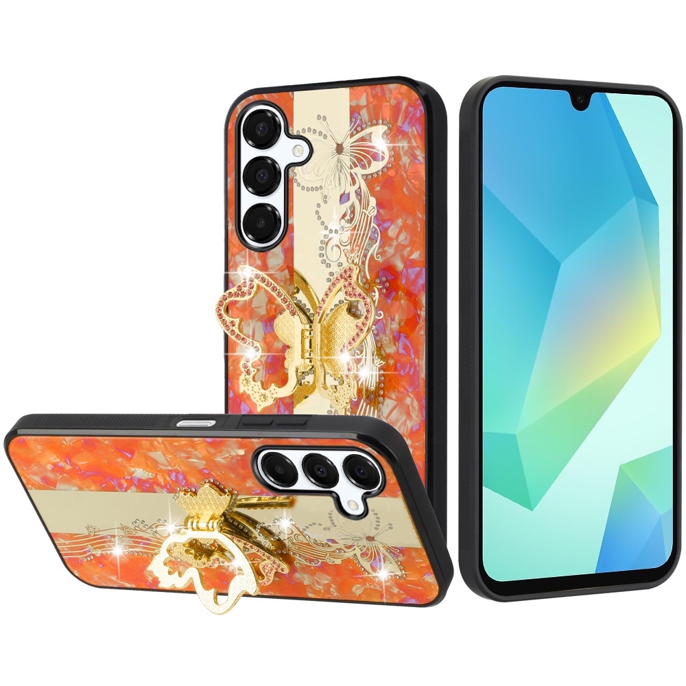 For Samsung A16 5G SPLENDID Diamond Glitter Ornaments Engraving Case Cover - Enchanted Butterfly Cosmic Orange
