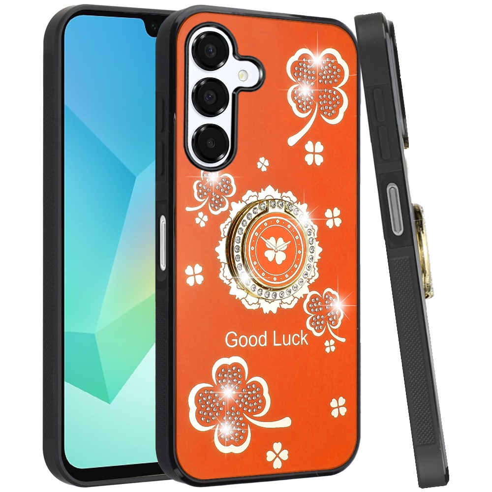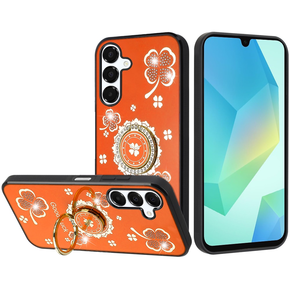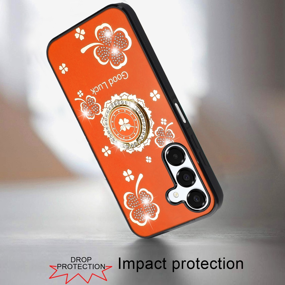For Samsung A16 5G SPLENDID Diamond Glitter Ornaments Engraving Case Cover - Good Luck Floral Cosmic Orange