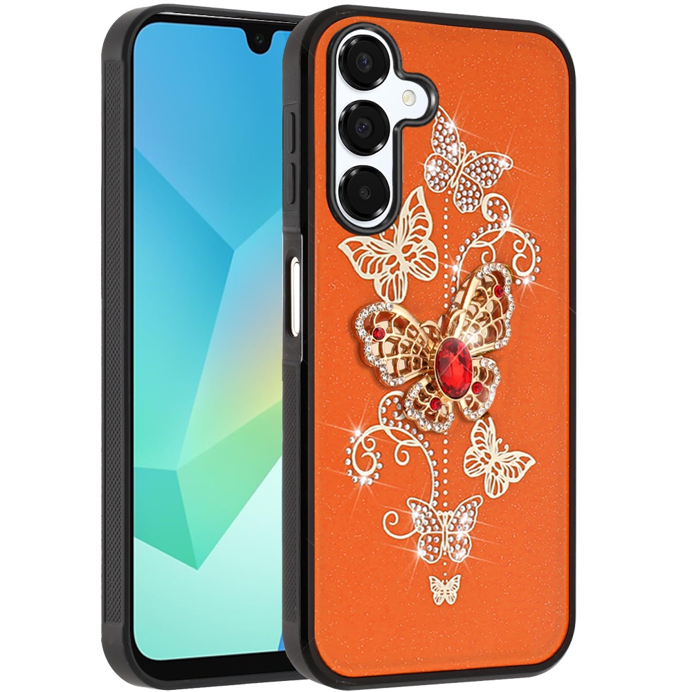 For Samsung A16 5G SPLENDID Diamond Glitter Ornaments Engraving Case Cover - Garden Butterflies Cosmic Orange