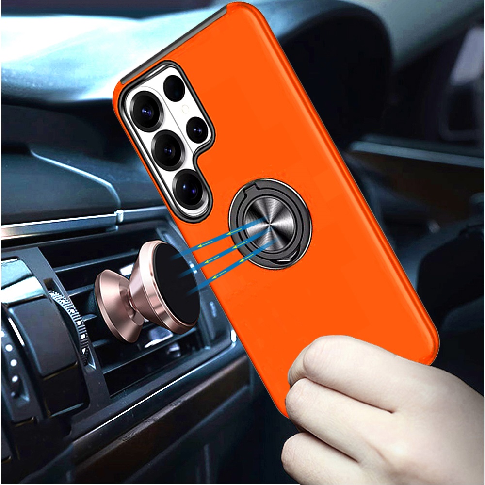 For Samsung s25 Ultra CHIEF Oil Painted Magnetic Ring Stand Hybrid Case Cover - Cosmic Orange