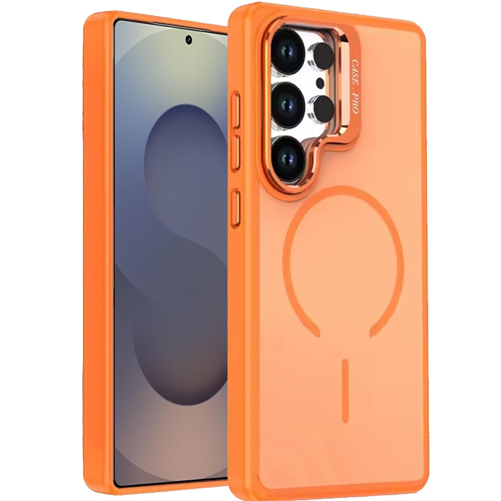 For Samsung s25 Ultra Premium Matte Magnetic Metal Camera Stand Hybrid Case - Cosmic Orange