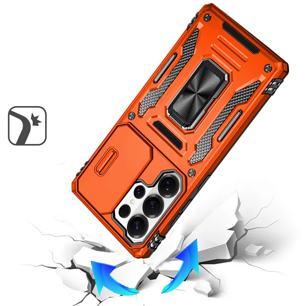 For Samsung s25 Ultra Utter Tough Metal Ring Movable Camera Window Hybrid Case Cover - Cosmic Orange