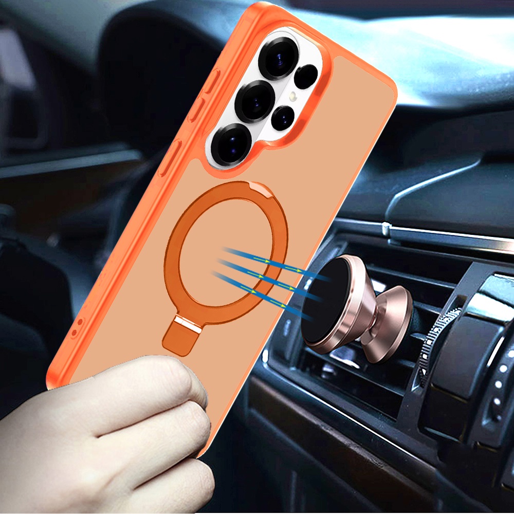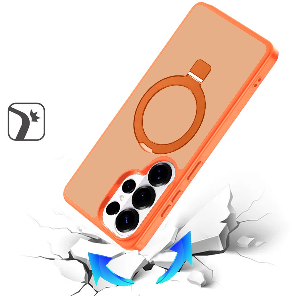For Samsung s25 Ultra Magnetic Matching Ring Stand Full Rotation Matte Hybrid - Cosmic Orange